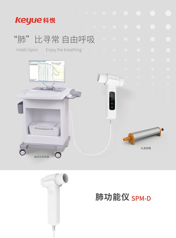 康泰肺功能仪SPM-D是一款肺功能检查设备,配备肺功能软件,用于检测患者呼吸功能状态;采用压差式采集原理,可进行用力肺活量FVC、肺活量SVC、最大分钟通气量MWV、静息分钟通气量MV及相关参数的测量,实时显示呼吸波形,适用于哮喘、慢性阻塞性肺风险筛查、肺纤维化和咳嗽等肺风险筛查的检查及疗效评估、术前安全评价、常规体检等。多用于呼吸内科、胸科、麻醉科、外科、职业病防治机构、体检机构等多个场景。